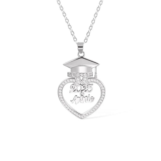 Personalized Grad Cap Zircon Heart Necklace with Name and Year Class of 2025 Graduation Birthday Gift for Graduates