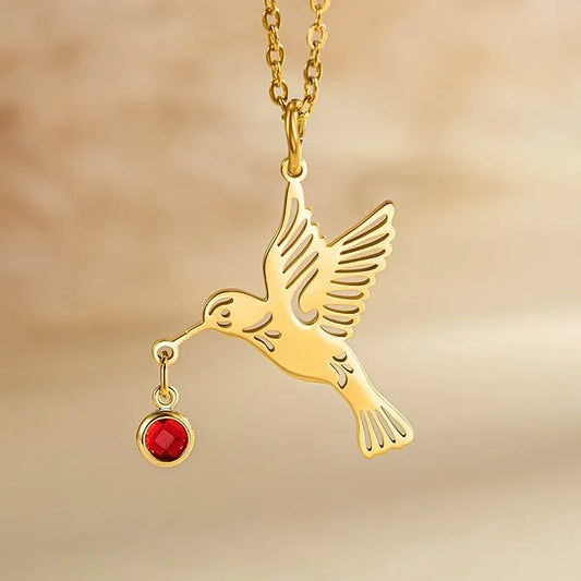 Personalized Dainty Hummingbird Necklace with Birthstone Bird Jewelry Birthday Anniversary Mother's Day Gift for Women