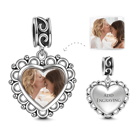 Custom Photo Charm Heart Arrow with Text Engraving on Back