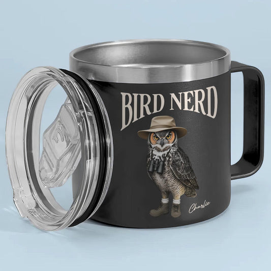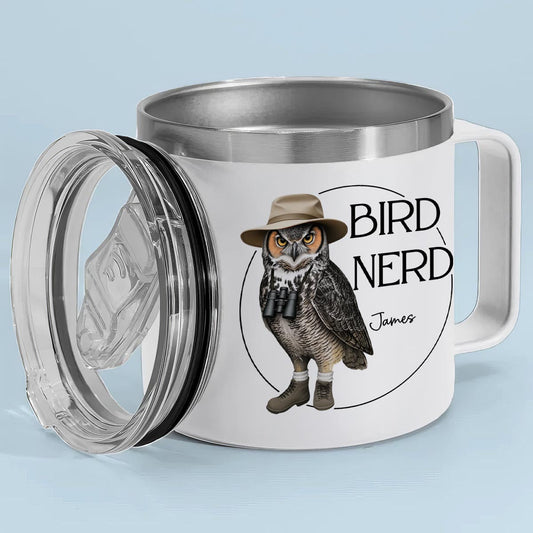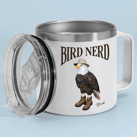 Bird Nerd Funny Gift For Bird Watcher, Bird Twitcher Bird Lover Personalized Stainless Steel Tumbler With Handle